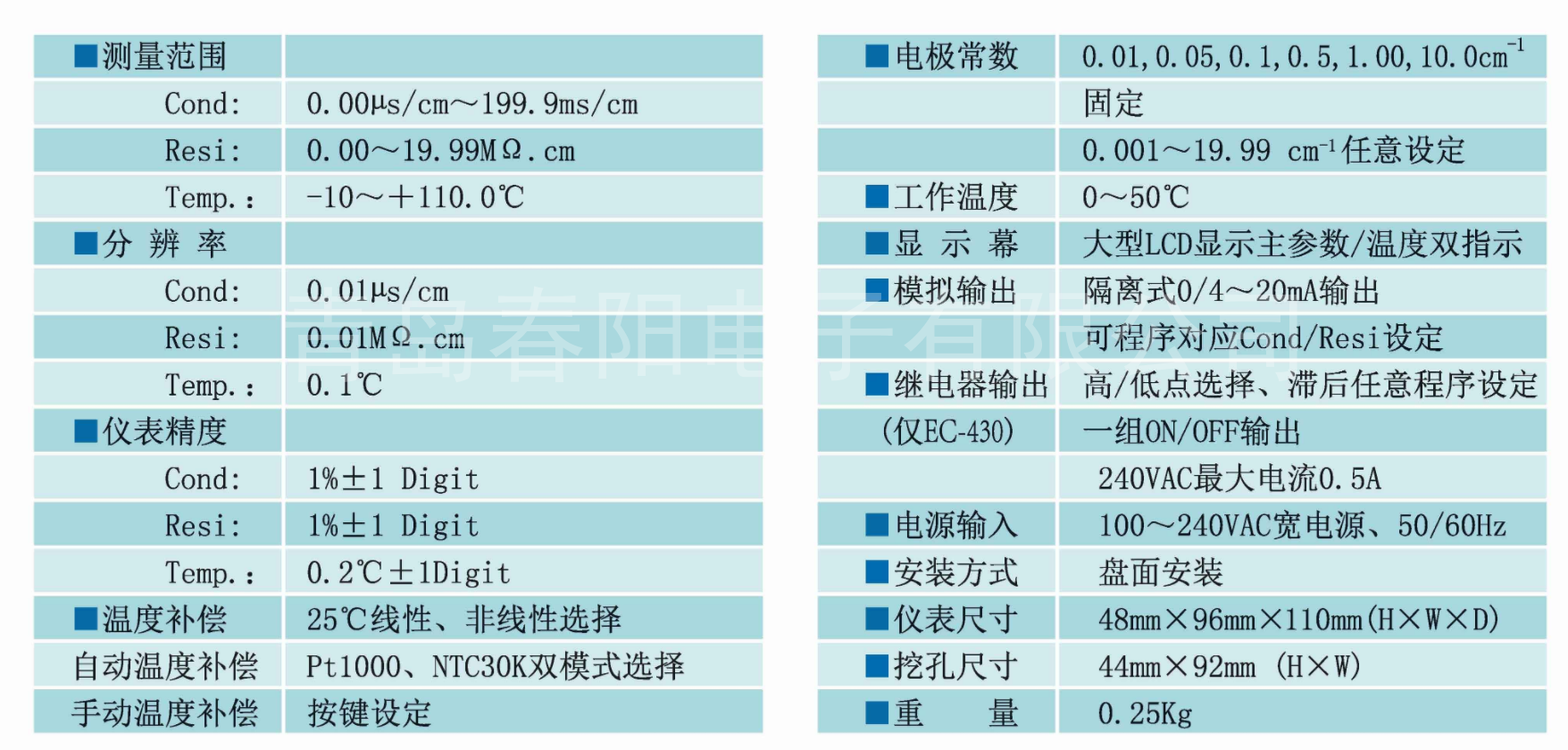 上泰SUNTEX电导率/电阻率仪EC410/EC430规格: -